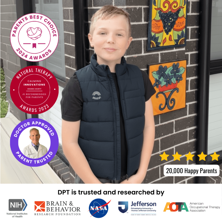Let your child's personality shine through - while being calmer and more focused. The Sereni Calming Vest is 100% natural and drug-free. The soft, breathable fabric moves with your child. So they can play, learn, and be active while staying calm. All without the nasty side effects.